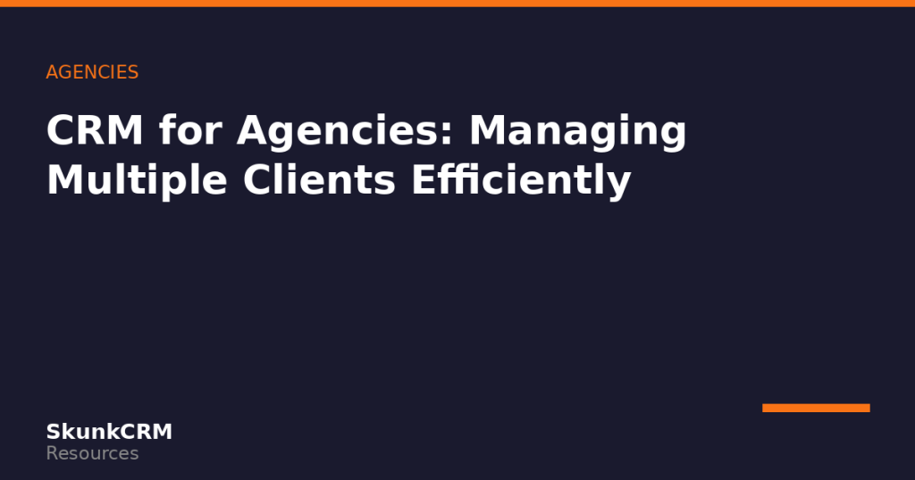 SkunkCRM gives agencies the tools to make this happen: flexible account and contact management, customizable pipelines, email integration, and the simplicity that ensures actual adoption. Whether you’re a boutique consultancy or a growing marketing agency, the fundamentals are the same.